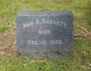 - Maria E Sackett b. 1 Sep 1835, d. 20 Apr 1894