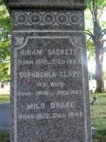 - Gravestone, "Henry Sackett/ born/ at Westfield Mass/ Mar 17, 1816/ died/ Apr 4, 1878/ Laura A/ his wife/ died/ Sept 21, 1879/ ae 57 yrs, 11ms/ & 2 ds."
