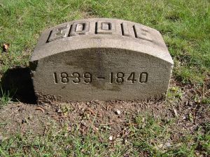 Edward Sacket, son of Alexander Sacket and Harriet Johnson, was born on 10 August 1839.1 He died in infancy in Cleveland, Cuyahoga County, OhioG, on 12 August 18401,2 and was buried at Lake View Cemetery, ClevelandG.3