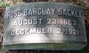 - "Ohio, County Marriage Records, 1774–1993" (Ancestry transcript), "14 Feb 1894, Cuyahoga County, Ohio, Levi A. Sacket and Rose Mae Barclay. By Rev Samuel Spricker. By license issued 13 Feb 1894."