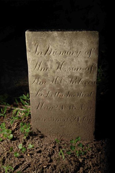 - Website Cemetery Transcriptions from the NEHGS Manuscript Collections (New England Historic Genealogical Society), "Sackett, Justus R., son of Justus, Jr., and Clarissa Sackett, d. Aug. 23, 1820, æ. 16 yrs, 4 mos and 25 days. Second Congregational Church Cemetery, Greenwich, Fairfield Co., Connecticut."