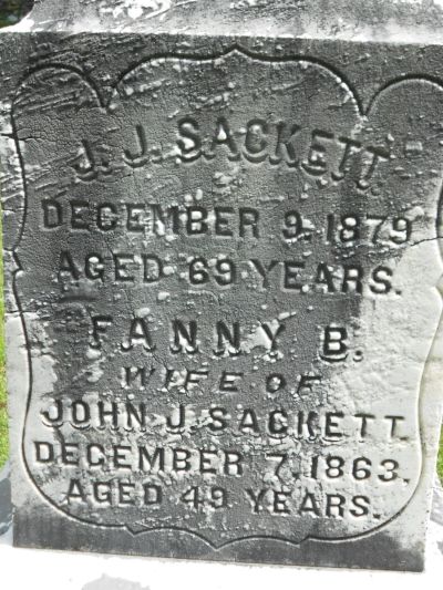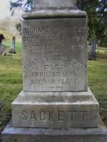- Gravestone, "Richard H Sackett/ born Dec. 5, 1797/ died Aug. 15, 1876/ Eunice Hollister Sackett/ died/ April 29, 1866/ aged 66 years."