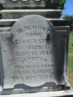 Betsey Bush Sackett, daughter of Nathaniel Sackett and Sarah Warren, was born in Owego, Tioga County, New York StateG, on 1 April 1800.1 She died aged 85 in Candor, Tioga CountyG, on 7 October 18851 and was buried at Maple Grove Cemetery, CandorG.2 She married on 10 September 1818, William Walter Hunt.1 William was born in Hartford, Hartford County, ConnecticutG, on 7 September 1796.2 He died aged 91 in CandorG on 12 September 1887 and was buried at Maple Grove Cemetery, CandorG.2