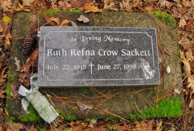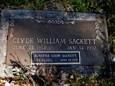 Clyde William Sackett, son of Royal Leonard "Roy" Sackett and Pearl Lenora Summers, was born in Riddle, Douglas County, OregonG, on 21 June 1914.1,2,3 He died in Grants Pass, Josephine County, OregonG, on 14 January 19921 and was buried at Granite Hill Cemetery, Grants PassG.3 He married Ruth Refna Crow. Ruth was born on 22 July 1915.4 She died on 27 June 1998 and was buried at Granite Hill Cemetery, Grants PassG.3