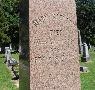 - Charles Weygant, The Sacketts of America, "2608. Ann Sackett, b. Feb. 2, 1821, d. unmarried, of Marshall, Mich."