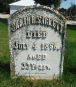 Sarah Raymond Sackett, daughter of Benjamin Sackett and Thalia Mounthrop, was born in Warren, Litchfield County, ConnecticutG, in 18341,2 and baptized at the Congregational Church of Christ, WarrenG, on 20 July 1834.3 She died aged 21 in Garnavillo, Clayton County, IowaG, on 4 July 18561 and was buried at Garnavillo CemeteryG.4