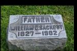 William Chester Sackett, farmer of Summit County, Ohio, son of Aaron Sackett and Huldah Camelia Tanner, was born in Warren, Litchfield County, ConnecticutG, on 29 October 1827.1 He died aged 75 at home in Coventry, Summit CountyG, on 14 November 19022,3 and was buried at Glendale Cemetery, Akron, Summit CountyG.5 He married in Summit CountyG on 18 March 1857, Harriet L Galbraith, daughter of Henry H Galbraith and Ann Langworthy.2,4 Harriet was born in Mogadore, Summit CountyG, on 25 July 1837.2 She died aged 68 in CoventryG on 14 January 19062 and was buried at Glendale CemeteryG.6