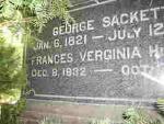 - The Treat Family: A genealogy of Trott, Tratt, and Treat, digital image, Ancestry.com, p 383, "2380. Frances Virginia [Grant, d. of William Traverse Grant and Esther Frances Treat], b. Dec. 8, 1832; m. Feb. 9, 1854, George Sackett, a man of general business affairs at home, and proprietor of coal land interests in Texas and Colorado. Resides at Cuyahoga Falls, Ohio."