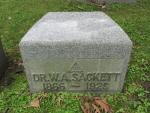 - "Ohio Deaths and Burials, 1854–1997" (FamilySearch image), "William A. Sackett, 59 years 27 days, b. Akron, Ohio, 27 Mar 1866, married, physician, of 11 Rose St, d. Akron, Summit, Ohio, 23 Apr 1925, bur. Glendale Cem., 25 Apr 1925, spouse Della, father Wm. C. Sackett b. Conn., mother Harriet Galbraith b. Ohio, informant R F Hamlin[?], Akron, Ohio. Certificate 25540. Digital image 2317, film 1992670."