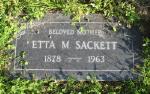 - "California, Death Index, 1940–1997" (Ancestry transcript), "Sackett, Etta M, b. Utah, 25 Jul 1878, d. Los Angeles, 19 Jan 1963."