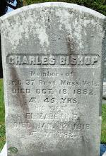- "Massachusetts Vital Records, 1841–1910" (American Ancestors image), v200, p63, marriage, "1867 Nov 1, Charles Bishop, of Belchertown, 28, farmer, b. Belchertown, s. Arnold & Sarah Bishop; and Lizzie P Sackett, of Easthampton, 21, b. Chester, d. Moses & Hellen P Sackett; both first m.; m. by Rev Franklin Thurb-."
