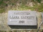 Clara Sackett, daughter of Emerson R Sackett and Laura Imber, was born in OhioG about 1906. She died in infancy in Fostoria, Seneca County, OhioG, in 1907 and was buried at Fountain Cemetery, FostoriaG.1