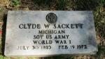 - US Social Security Administration, "Social Security Death Index" (American Ancestors transcript), "Clyde Sackett, b. Jul 30, 1893, d. Feb, 1972, SSN 368-09-4834 issued MI, residence Grand Rapids, Michigan, 49504, county Kent."