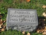 Harvey Edward Sackett, son of Francis Marion "Frank" Sackett and Emma J "Jennie" Fox, was born in Delhi, Delaware County, IowaG, on 13 March 1884.1,2,3 He died aged 75 in Santa Clara County, CaliforniaG, on 20 May 1959.4 He married in Cedar Rapids, Linn County, IowaG, on 6 July 1932, Philomena Goebel, daughter of Frederick Goebel and Catherine Rothlein.5 Philomena was born in Poseyville, Posey County, IndianaG, in 1904.6,7 She died aged 35 in Butte County, CaliforniaG, on 12 November 1939 and was buried at St Joseph Catholic Cemetery, Evansville, Vanderburgh County, IndianaG.8,9