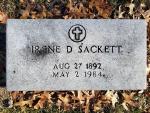Irene D. Sackett, 91, of Parkridge Manor, 4755 Parkridge Ave. in Pleasant Hill, died of a heart ailment Wednesday at Mercy Hospital Medical Center. Services will be at 11 a.m. Saturday at Hamilton's Funeral Home, and burial will be in Oakwood Cemetery in Pleasant Hill.