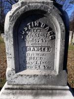 In 1850 Frances was living in West SpringfieldG in the household of her husband Justin Bagg, 55, a farmer, and was recorded in the census as Frances Bagg, aged 64. Their sons, Seymour, 30, and Franklin, 24, were living with them. There were also two farm laborers in the household.11