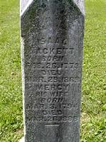 Isaac Sackett, farmer, son of Zavan Sacket Sr and Abigail Bills, was born in MassachusettsG on 26 February 1783.1,2 He died aged 86 in Wayne, Ashtabula County, OhioG, on 29 March 18691,3 and was buried at Center Cemetery, WayneG.4,5 He married in 1833, Mercy Mansfield.1 Mercy was born in VermontG on 3 March 1794.1,2,6 She died aged 94 in WayneG on 26 March 18886,7 and was buried at Center CemeteryG.4
