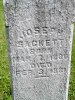 - Gravestone, "In/ memory of/ Justice Sackett/ who died Feb. 28/ 1831/ aged 53 years."