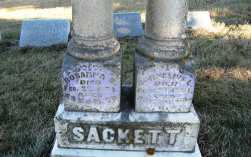- Rosetta J Sackett b. 22 Feb 1847, d. Nov 1897
