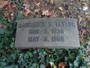 Margaret Minerva Sacket, daughter of Alexander Sacket and Harriet Johnson, was born in OhioG on 3 May 1838.1,2 She died aged 70 in Cleveland, Cuyahoga County, OhioG, on 6 May 1908 and was buried at Lake View Cemetery, ClevelandG.3 She married on 23 June 1862, Virgil Corydon Taylor, son of Hector Taylor and Polly Carter.1 Virgil was born in Twinsburg, Summit County, OhioG, on 4 August 1838.3 He died aged 85 in ClevelandG on 6 May 1924 and was buried at Lake View Cemetery, ClevelandG.3