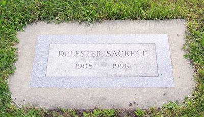 - "U.S. Social Security Applications and Claims Index, 1936–2007" (Ancestry transcript), "Sackett, Delester, b. 3 Jul 1905, d. 1 Jan 1996, claim date 8 Apr 1970."