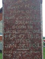 In 1881 she was living in EgremontG in the household of her parents George and Martha, and was recorded as Mary A Sacket, aged 15.1
