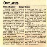 Dale A Kramer, son of Roy F Kramer and Vera Violet Sackett, was born in Dodge Center, Dodge County, MinnesotaG, on 14 May 1937.1 He died aged 71 at the Hays Medical Center, Hays, Ellis County, KansasG, on 9 August 2008.1 Dale married first at St John's Lutheran Church, Kasson, Dodge County, MinnesotaG, on 22 September 1956, Alyce Morris.2 He married second at the United Methodist Church, La Crosse, Rush County, KansasG, on 19 May 1978, Janet Walker.1