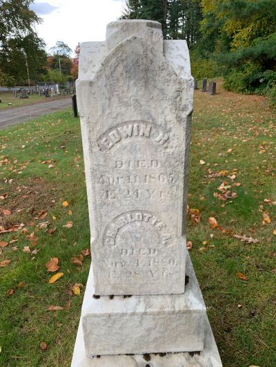 Edwin R Sacket, son of Austin Sackett and Charlotte Hayes, was born in Westfield, Hampden County, MassachusettsG, about 1841.1 He died there aged 24 on 10 April 18652 and was buried at Pine Hill Cemetery, WestfieldG.3