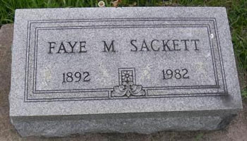 - Faye Sackett b. 3 Jul 1892, d. 23 Oct 1982
