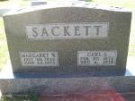 - "Indiana marriages 1811–2019" (FamilySearch image), "Marriage license, Carl Leroy Sackett, b. Culbertson, Gage County, Neb, 27 Feb 1876, res. Sheridan, Wyoming, lawyer, father John Henry Sackett b. NY stock raiser deceased, mother Martha Ann Bird housekeeper b. IL res. Sheridan, 1st wife died 8 May 1910, sworn Kosciusko Circuit Court, Indiana, 30 Apr 1914; Margaret Hall Woods, b. Warsaw, Kosciusko County, IN, 30 Jul 1884, res. Warsaw, stenographer, father James Foster Woods b. Ohio harness maker res. Warsaw, mother Jemima Hall housekeeper b. IN res. Warsaw, 1st m., sworn Kosciusko Circuit Court, Indiana, 30 Apr 1914. Certificate, 2 May 1914, Carl Leroy Sackett of Sheridan and Margaret Hall Woods of Warsaw m. on 1 May 1914 in Warsaw, Indiana, by James M Eakins, Minister of the Gospel."