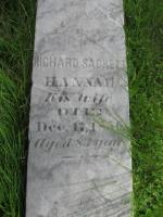Richard Sackett was born say 1770.1 His parents have not been identified. He married in Cummington, Hampshire County, MassachusettsG, on 9 January 1794, Hannah Porter, daughter of Jacob Porter and Rachel Reed.2,3 Hannah was born in Abington, Plymouth County, MassachusettsG, on 18 January 1773.3 She died aged 83 in Rushville, Yates County, New York StateG, on 17 December 1856 and was buried at the French Cemetery, RushvilleG.3