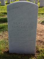 Back "Beatrice Elizabeth His Wife / June 23 1921 / Mar 21 2014 / Beloved Mother / Grandmother / Our Beatty." - Find a Grave, Obituary (researched by Ted Smith).