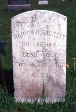 - "Connecticut, Hale Cemetery Inscriptions and Newspaper Notices, 1629–1934" (Ancestry image), 43:110, Inscription, Salisbury Cemetery, Salisbury, Litchfield County, "Sackett, Marvin H, Company I, 12th Infantry, Connecticut Volunteers, died Dec 5, 1914, age 69 yrs. Civil War."