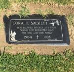 - US Social Security Administration, "Social Security Death Index" (American Ancestors transcript), "Cora T Sackett, b. Aug 25, 1904, d. Jun 16, 1998, SSN 550-21-5419 issued CA, residence Irvine, California, 92614, county Orange."