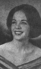 The bride, given in marriage by her father, was lovely in her floor-length bridal gown of white marquisette embroidered with white sprays of lilies-of-the-valley tied with bows. Tiny satin buttons extended down the back of the gown to the dropped waistline. Long tight fitting sleeves came to points over the hands. The skirt was gathered at the hips and fell in a train. Her fingertip veil of illusion was bordered with wide white lace and fastened with a tiara of lilies-of-the-valley. The bride carried an orchid on a white Bible with streamers tied with carnation buds.