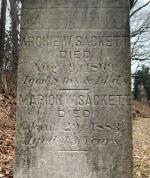 - Gravestone, "Archie W. Sackett/ died/ Aug. 9, 1869/ aged 8 mos & 14 ds."